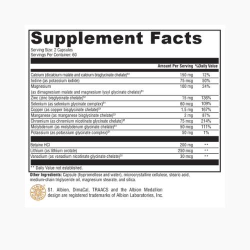 Min Power is highly absorbable and balanced multi-mineral formula, is composed exclusively of Albion®’s patented and fully reacted mineral amino acid chelates, malates, and mineral complexes.*